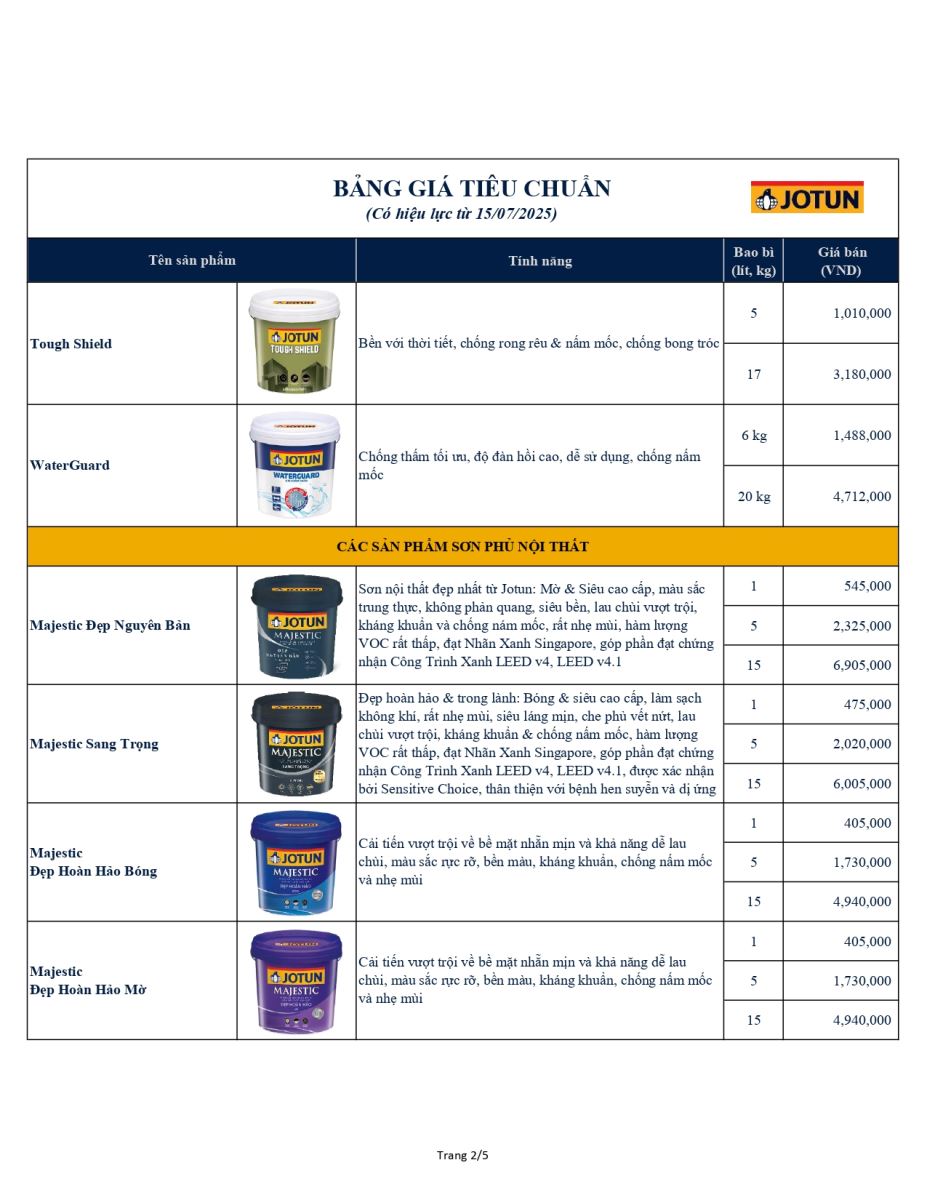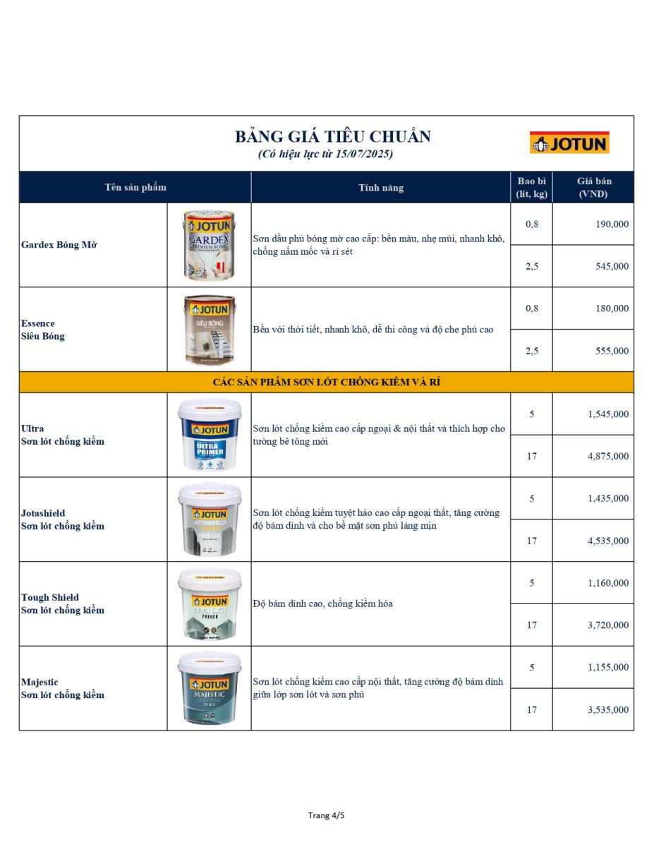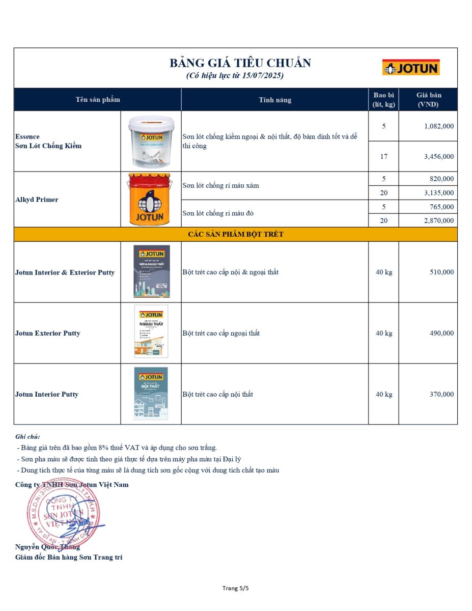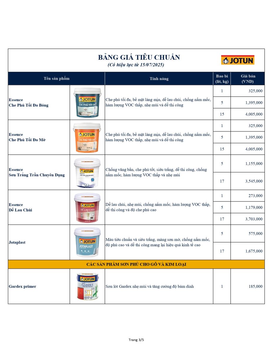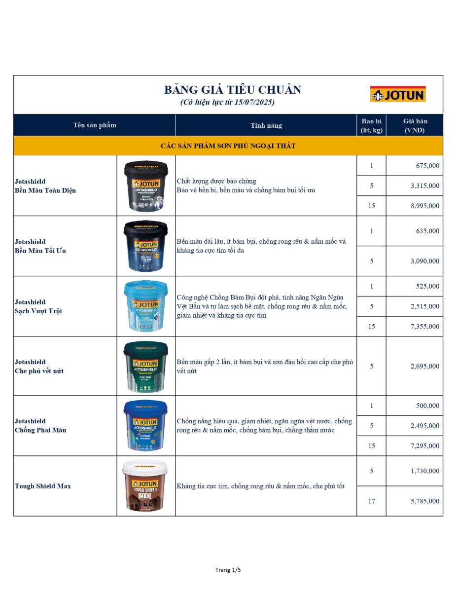 Dưới đây là bảng giá sơn nước, bột trét tường, sơn dầu,... của Jotun An Phát , mời Quý khách tham khảo.